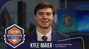 The senior from Upstate New York is manning the mic while also interning for the athletic department's sports-information team